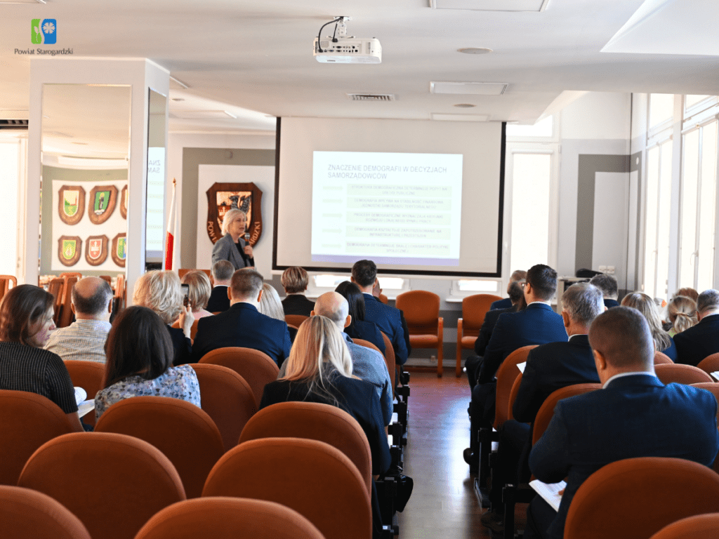 Jednym z najważniejszych punktów obrad była prezentacja kompleksowej diagnozy demograficznej przygotowanej przez dr inż. Anitę Richert-Kaźmierską, pełnomocnik Wojewody Pomorskiego ds. Rodziny, Polityki Społecznej i Senioralnej. Opracowanie powstało na zlecenie Starosty Starogardzkiego Wiolety Strzemkowskiej-Konkolewskiej i obejmuje szczegółową analizę zmian ludnościowych w poszczególnych gminach.